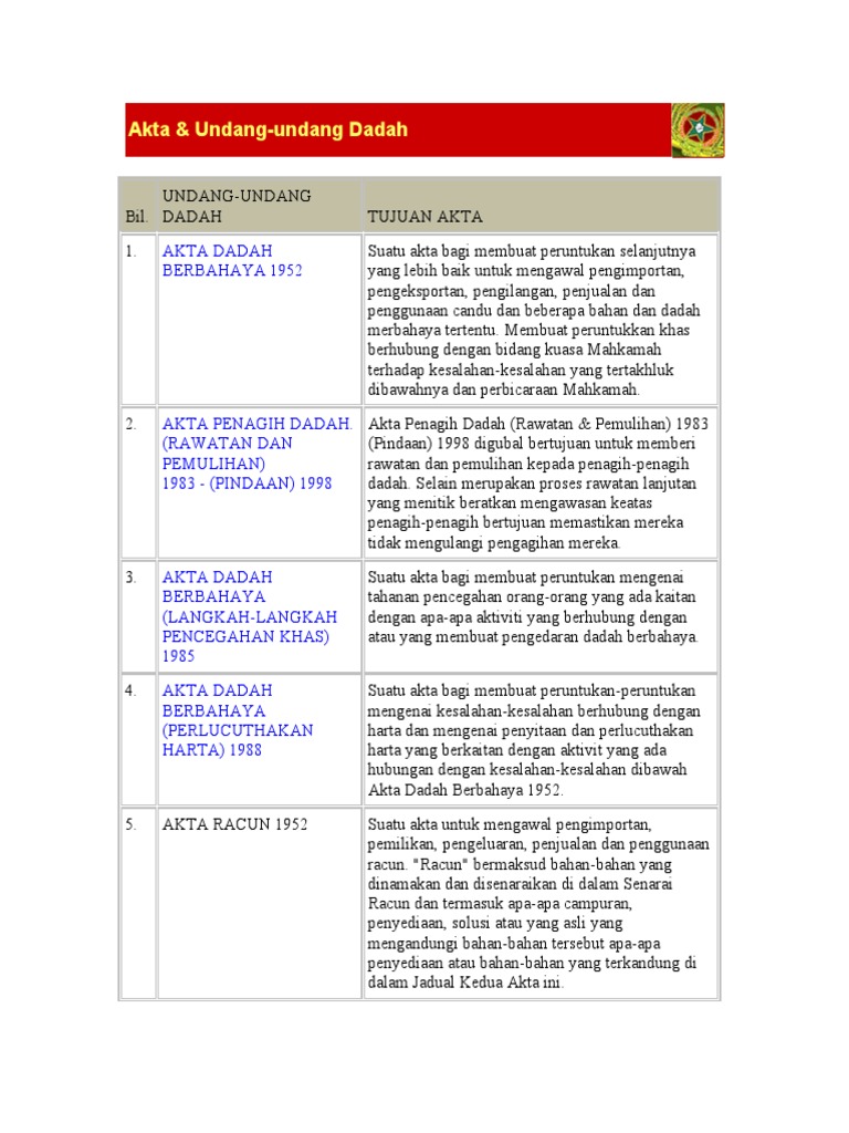 Akta Dadah Berbahaya 1952 Pindaan 1998