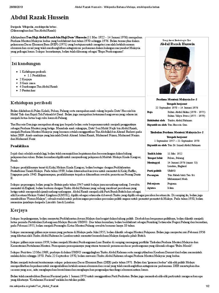 Tokoh Pujaanku Tun Abdul Razak Biodata Tun Abdul Razak