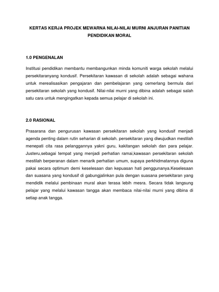 Kertas Kerja Projek Nilai Nilai Murni Pendidikan Moral