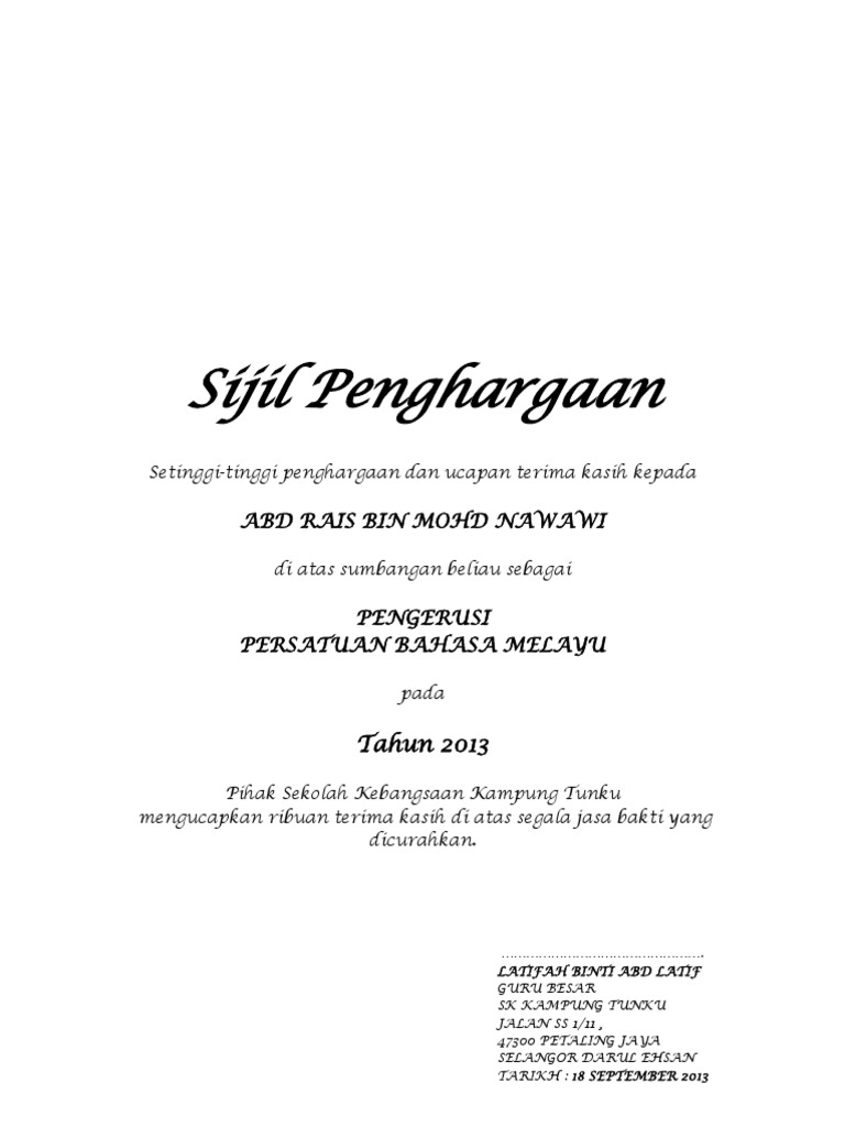 Contoh Sijil Penghargaan Dan Boleh Diedit