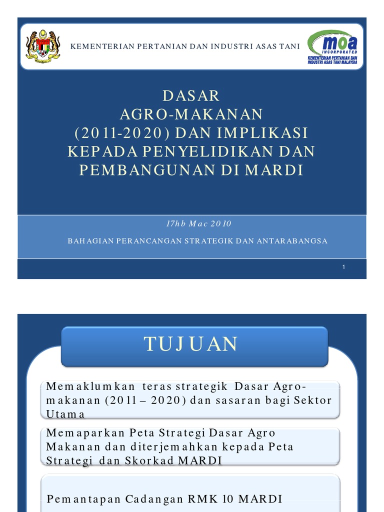 Dasar Agro Makanan Negara 2011 2020 Dato Raihan Tksu Pdf Document