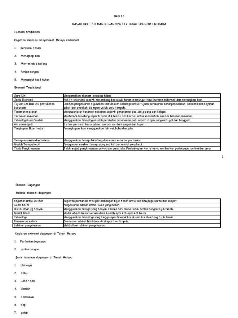 Sejarah Tingkatan 4 Bab 10 Dasar British Dan Kesannya Terhadap Ekonomi Negara