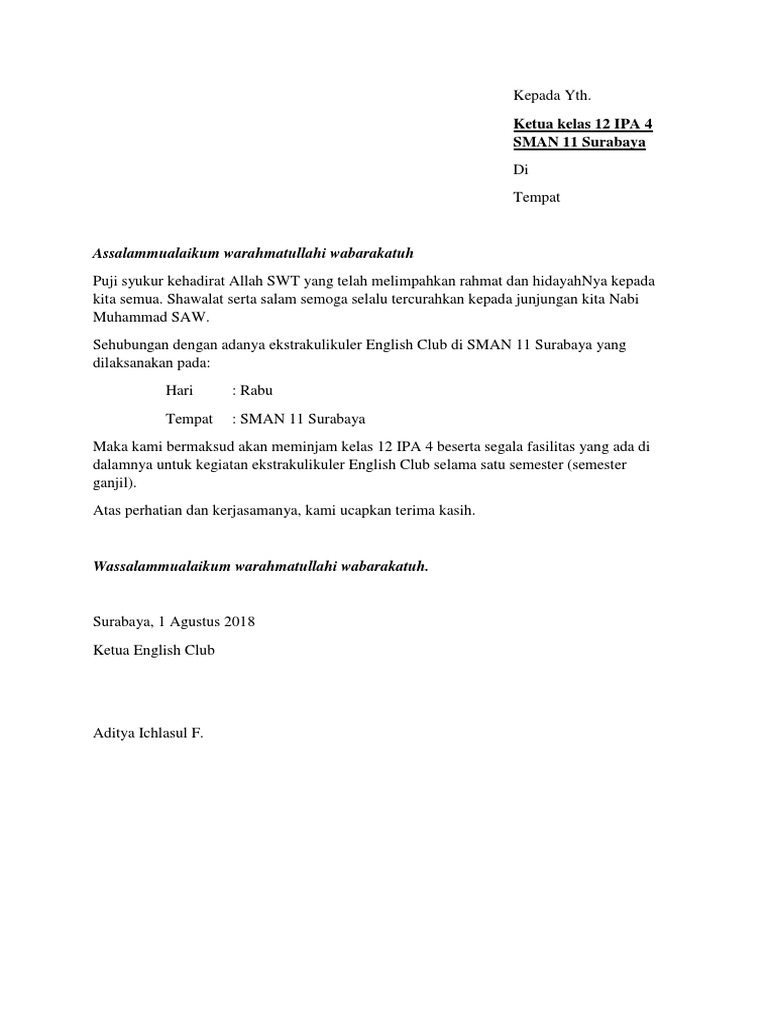 Assalammualaikum Warahmatullahi Wabarakatuh Ketua Kelas 12 Ipa 4 Sman 11 Surabaya