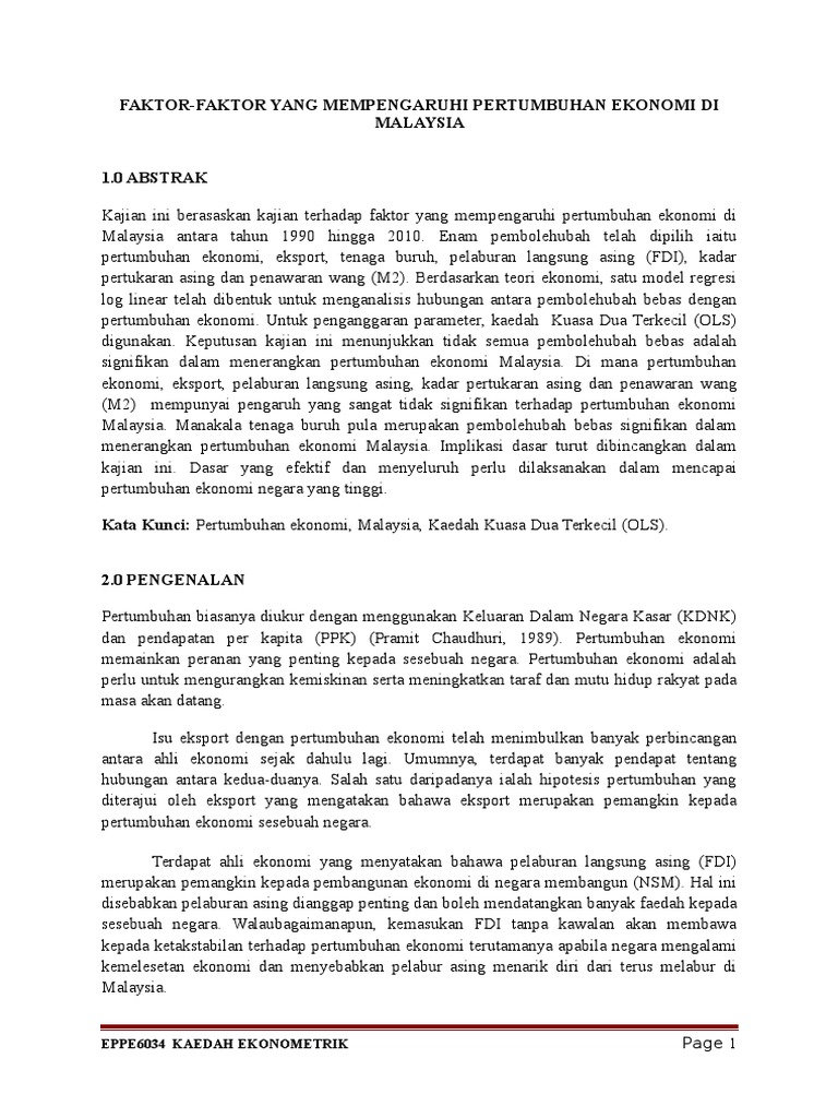 Faktor Faktor Yang Mempengaruhi Pertumbuhan Ekonomi Di Malaysia