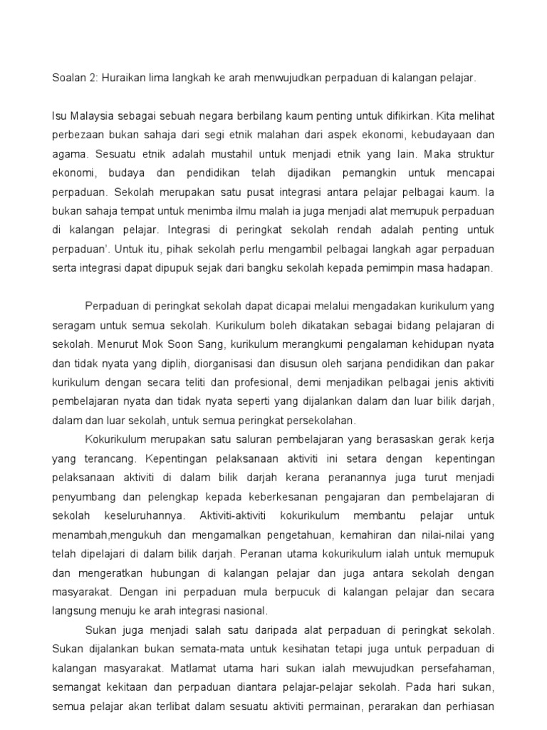 Huraikan Lima Docx Huraikan Lima 5 Langkah Ke Arah Mewujudkan Perpaduan Dalam Kalangan Pelajar 1 Kurikulum A Perpaduan Di Peringkat Sekolah Dapat Course Hero