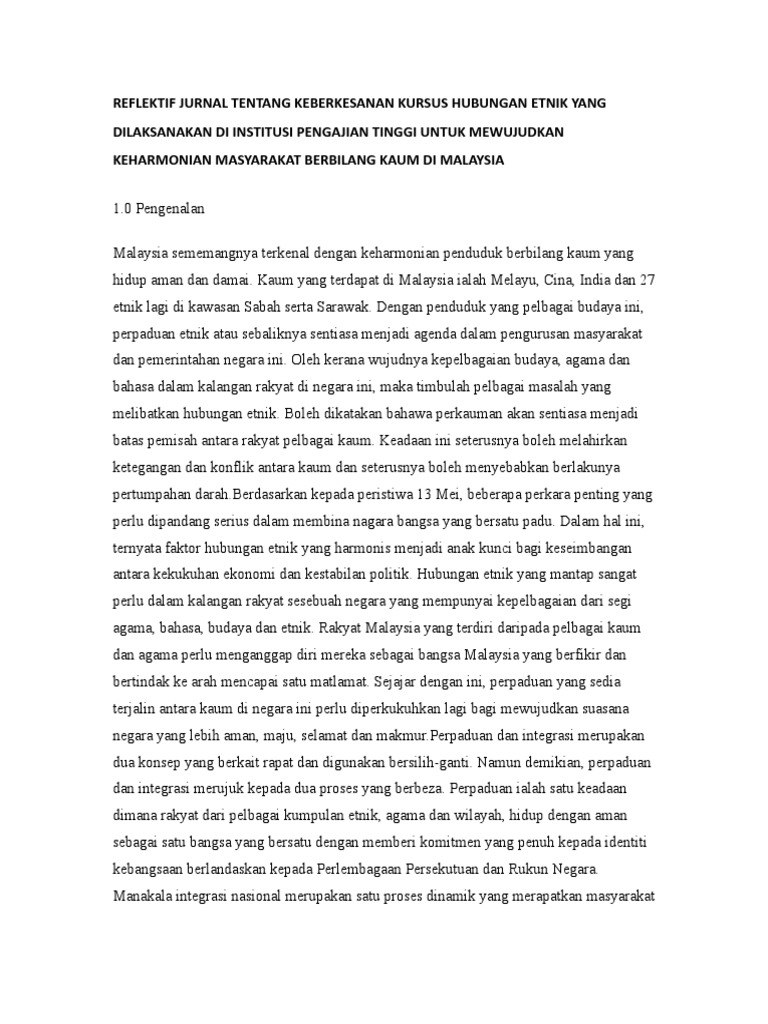 Jurnal Hubungan Etnik Di Malaysia Pdf