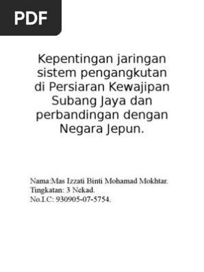 Kepentingan Jaringan Sistem Pengangkutan Di Persiaran Kewajipan Subang Jaya Dan Perbandingan Dengan Negara Jepun