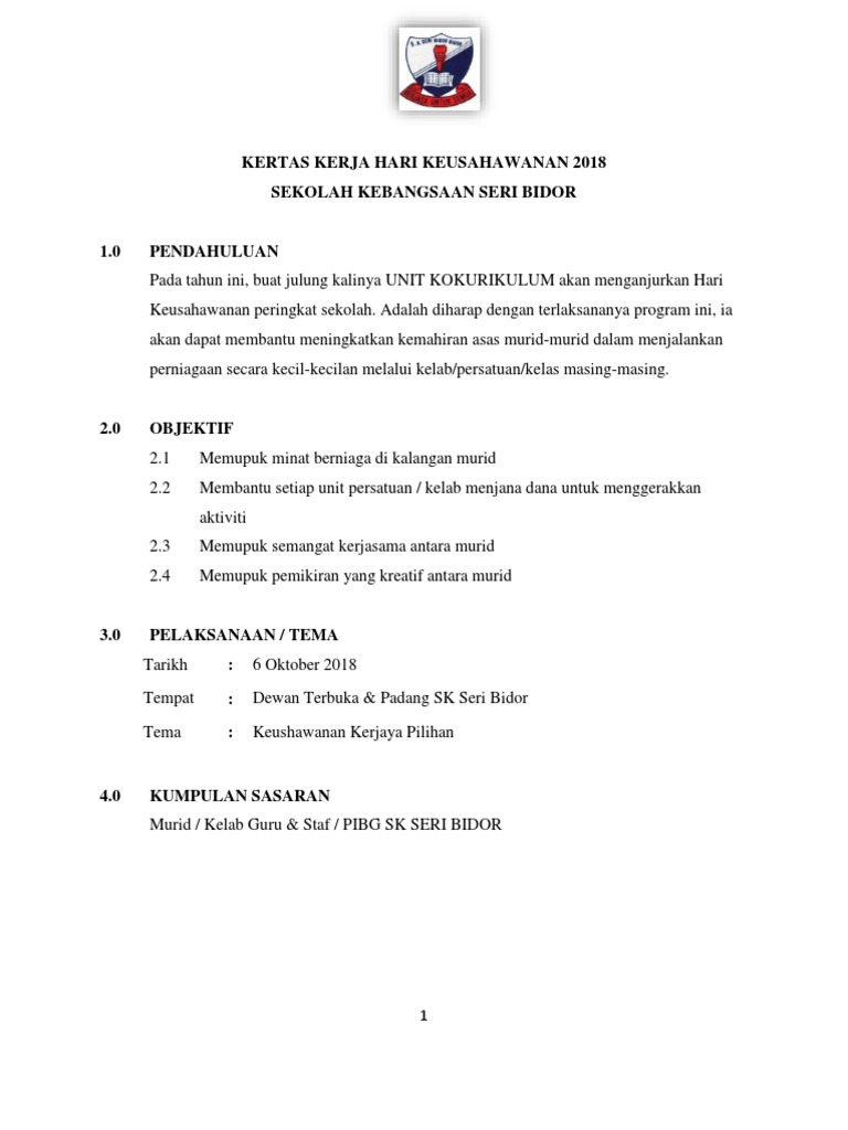 Kertas Kerja Hari Keusahawanan Skdua 2019 Pages 1 9 Text Version Fliphtml5