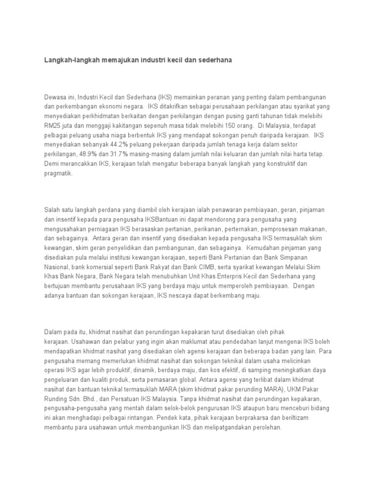 Langkah Langkah Memajukan Industri Kecil Dan Sederhana