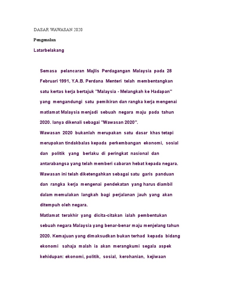Latar Belakang Objektif Dan Prinsip Wawasan 2020 By Sharifah Amira