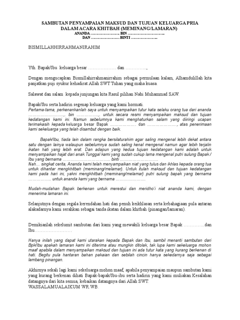 Sambutan Penyampaian Maksud Dan Tujuan Keluarga Pria Doc