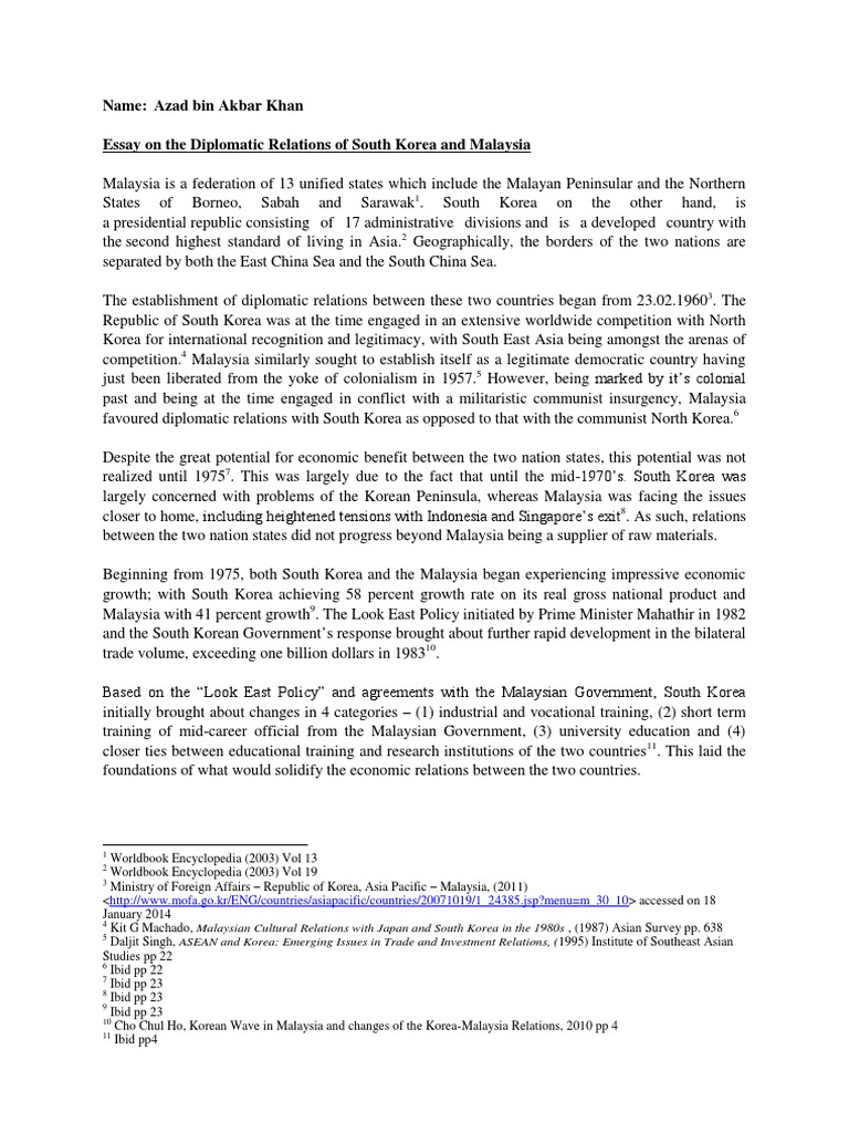 3 Essay On The Diplomatic Relations Of South Korea And Malaysia Malaysia South Korea