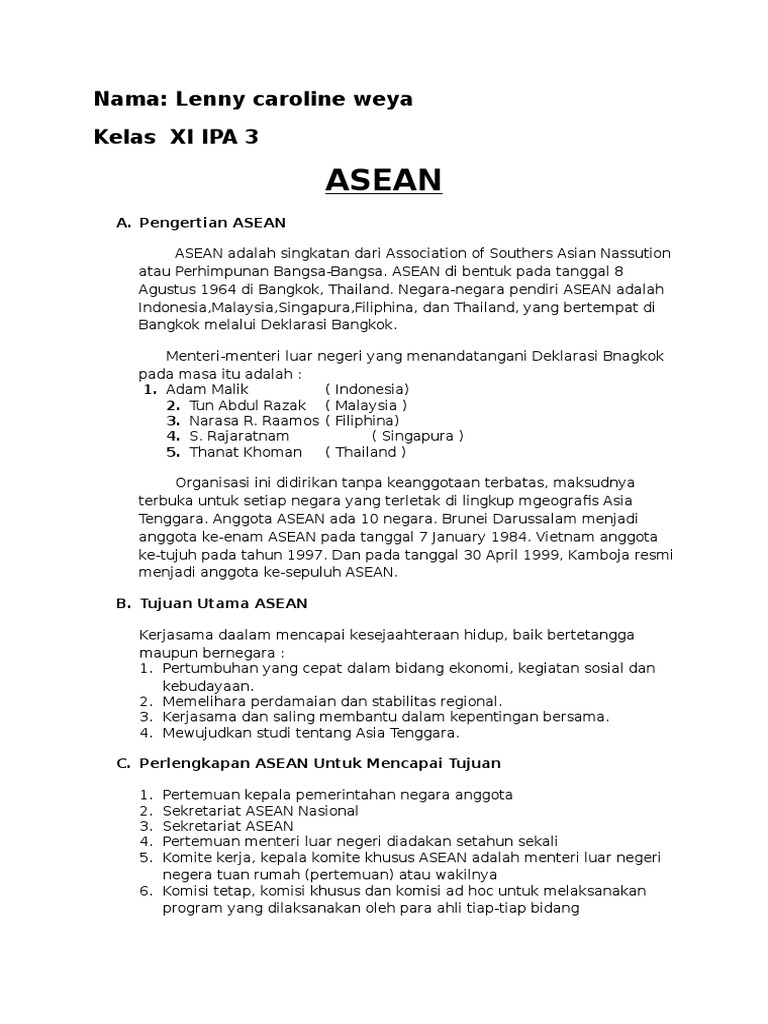 Asean Nama Lenny Caroline Weya Kelas Xi Ipa 3