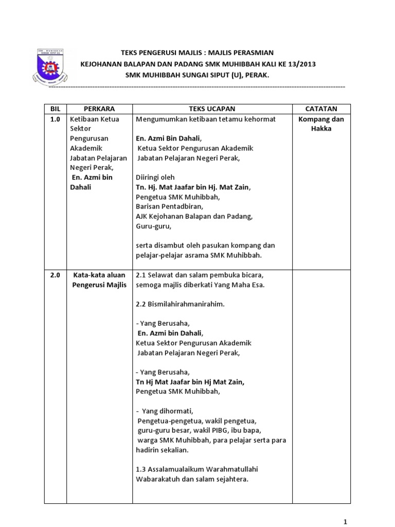 Contoh Teks Pengerusi Majlis Dwibahasa Docx
