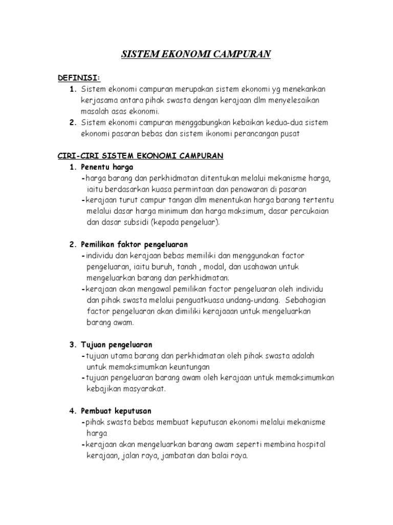 Makalah Sistem Ekonomi Campuran Edu Online Program