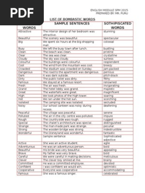 List Of Bombastic Words Nature