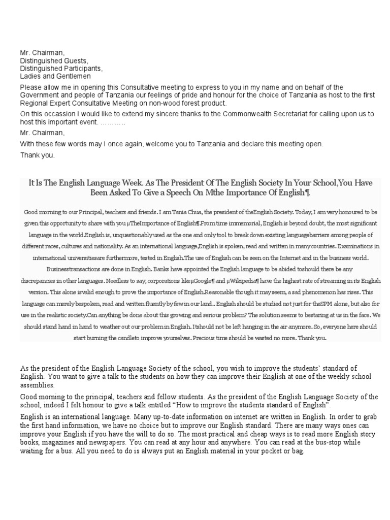 Teks Ucapan In English