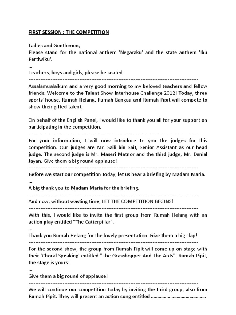 Skrip Emcee In English